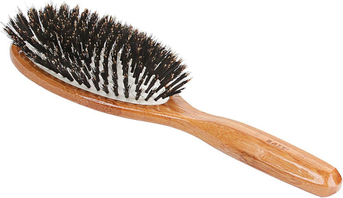 Brosse - Grand coussin ovale 100 % poils de sanglier biseautés en bois clair, faite à la main par Bass Brushes