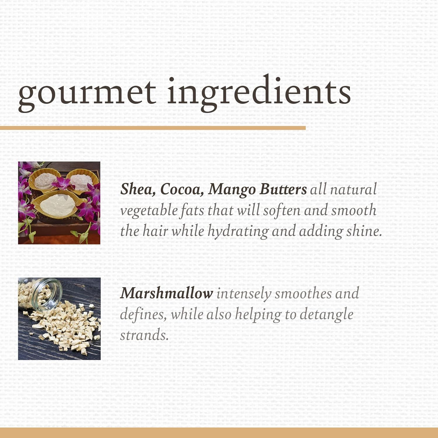 Le beurre brun fondu maintient les coiffures en place tout en soutenant vos cheveux Des racines aux pointes. Le karité, le cacao et la mangue créent la base idéale pour l'infusion huiles d'olive, de mandarine et de tournesol. Pour plus nourriture, nous ajoutons de la guimauve pour créer un baume coiffant qui peut apaise et stimule votre cuir chevelu.