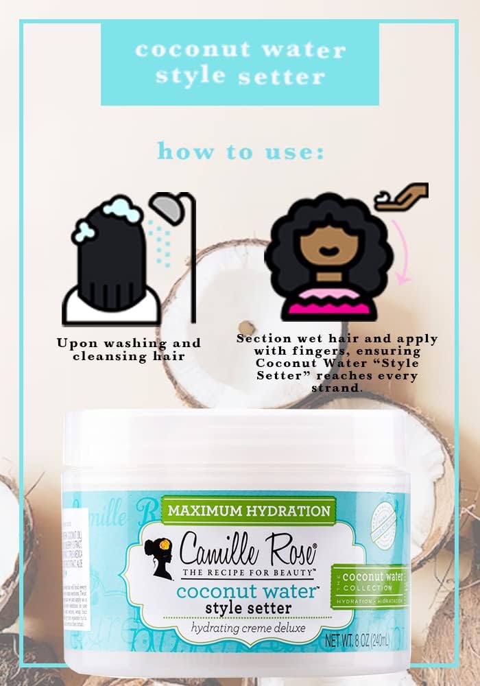 Séparez vos cheveux mouillés et appliquez notre gel coiffant tropical du bout des doigts, en veillant à ce que le fixateur à l'eau de coco atteigne chaque mèche. Torsadez ou tressez vos cheveux et laissez sécher complètement avant de les séparer. Pour un résultat optimal sur les produits Wash and Go, appliquez-le sous le Curl Maker de Camille Rose.