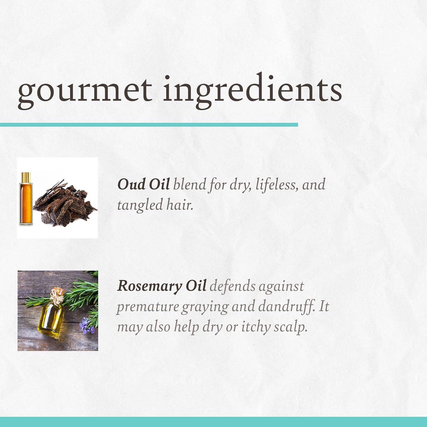 Un mélange exotique de cheveux et de cuir chevelu pour les cheveux secs, sans vie et emmêlés. Notre cocktail hydratant intense infuse une huile d'oud rare du Moyen-Orient riche à l'olive et au jojoba, conçu pour nourrir le cuir chevelu abîmé, pénétrer cuticules et favorisent une brillance totale.