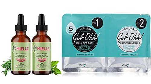 Huile de romarin et de menthe Mielle 2 oz, paquet de 2, et gel bonus - ohh Foot Spa Tea Tree et menthe poivrée - Journée spa à la menthe ultime