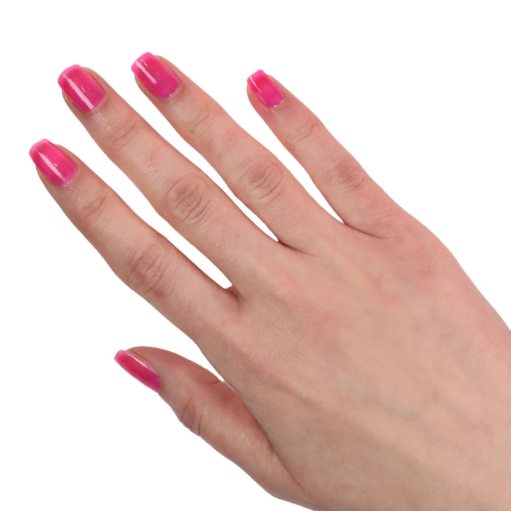 Power Pink - Nail Lacquer est un rose néon vibrant avec une finition gelée holographique, offrant une couleur audacieuse et accrocheuse et un chatoiement ludique.