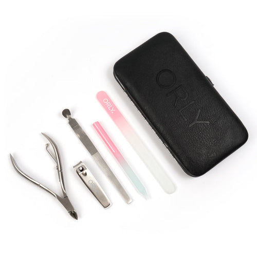 Kit manucure magnétique ORLY pour manucures et pédicures | Kit de voyage pour les ongles avec deux limes à ongles en verre, un repousse-cuticules, une pince et un coupe-ongles pour un soin des ongles en déplacement
