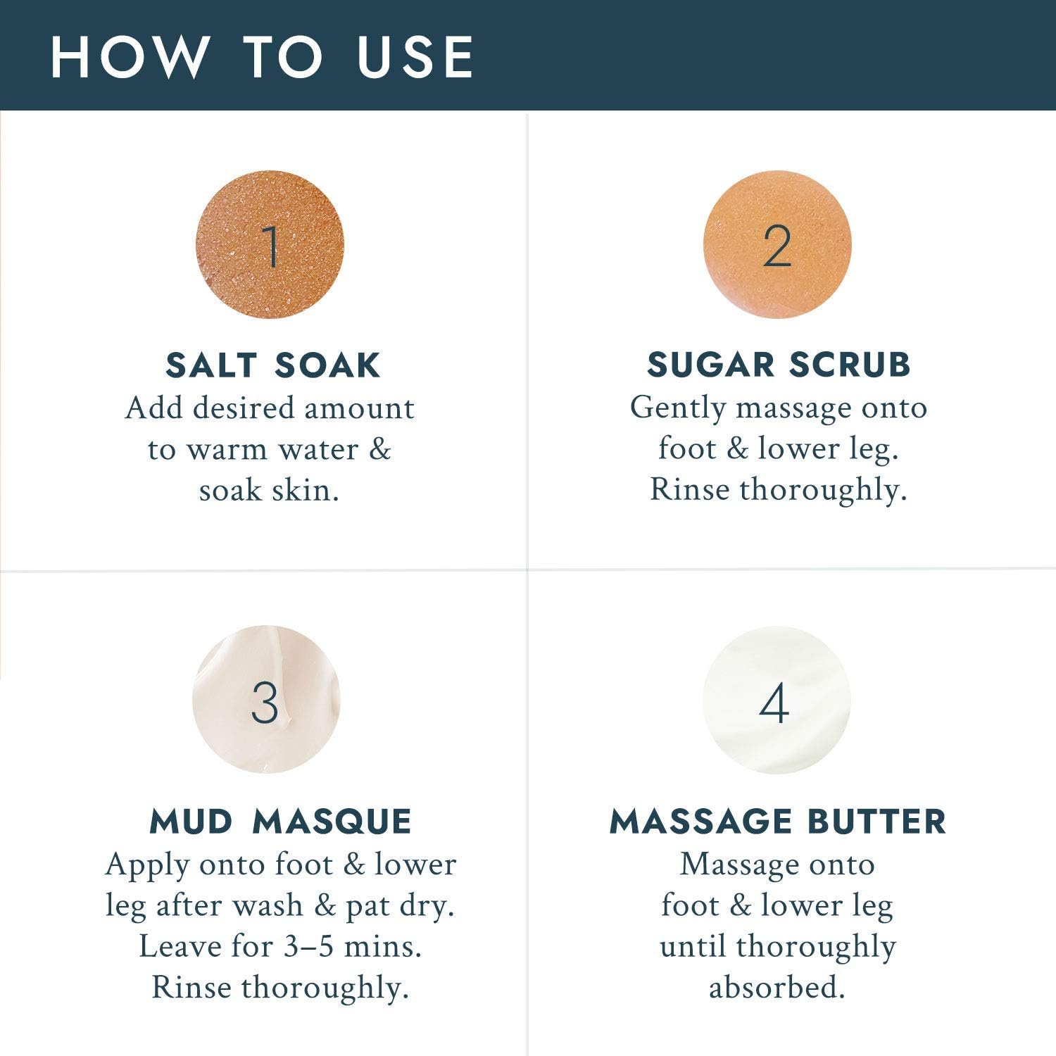 Offrez à vos pieds une pédicure spa relaxante et agréable à la maison ! Ce coffret luxueux en 4 étapes comprend un bain de sel marin, un gommage 100 % sucre, un masque de boue et un beurre de massage emballés individuellement pour une pédicure parfaite à faire soi-même.