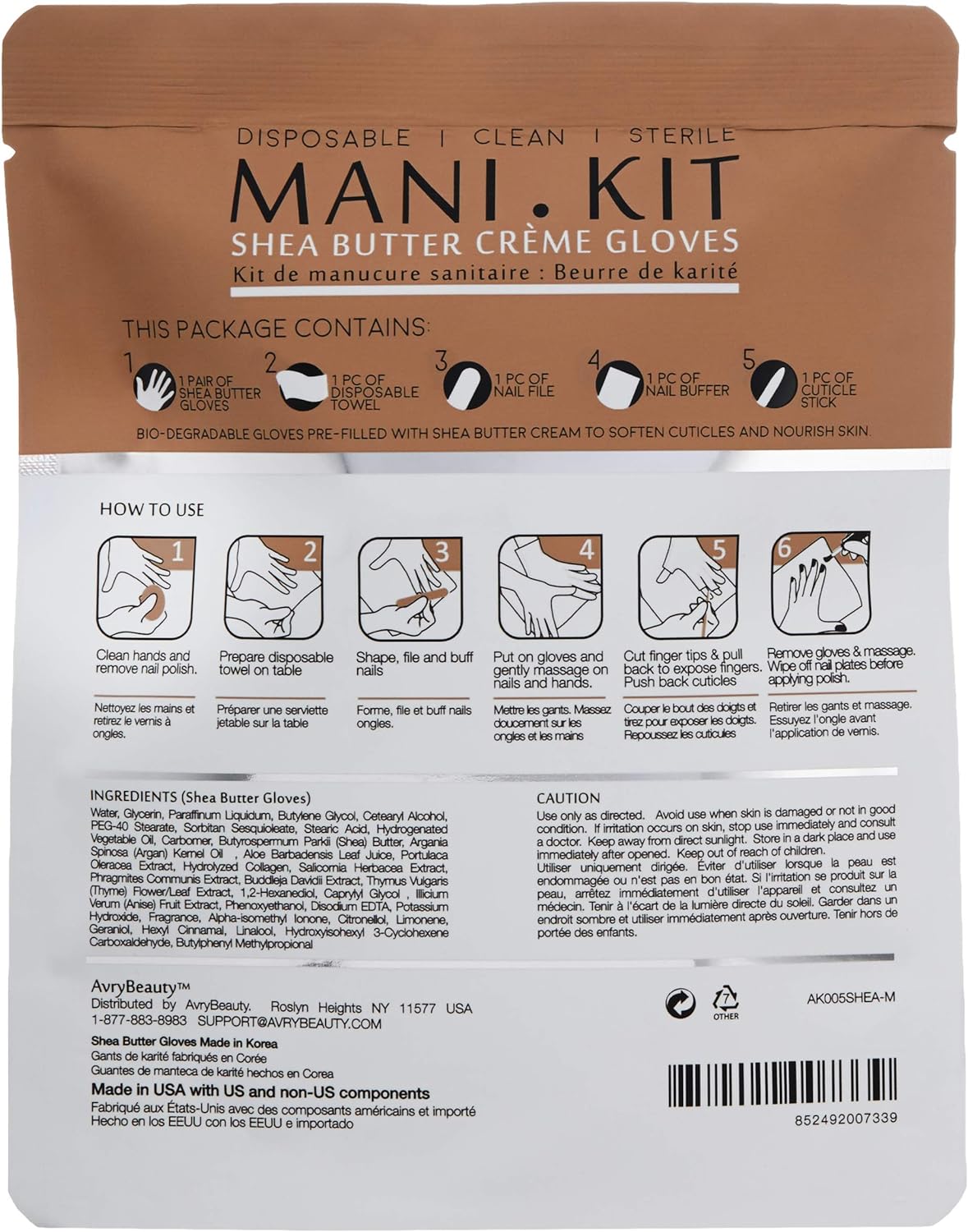 Kit de manucure tout-en-un AvryBeauty avec gants au beurre de karité, 1 ct.