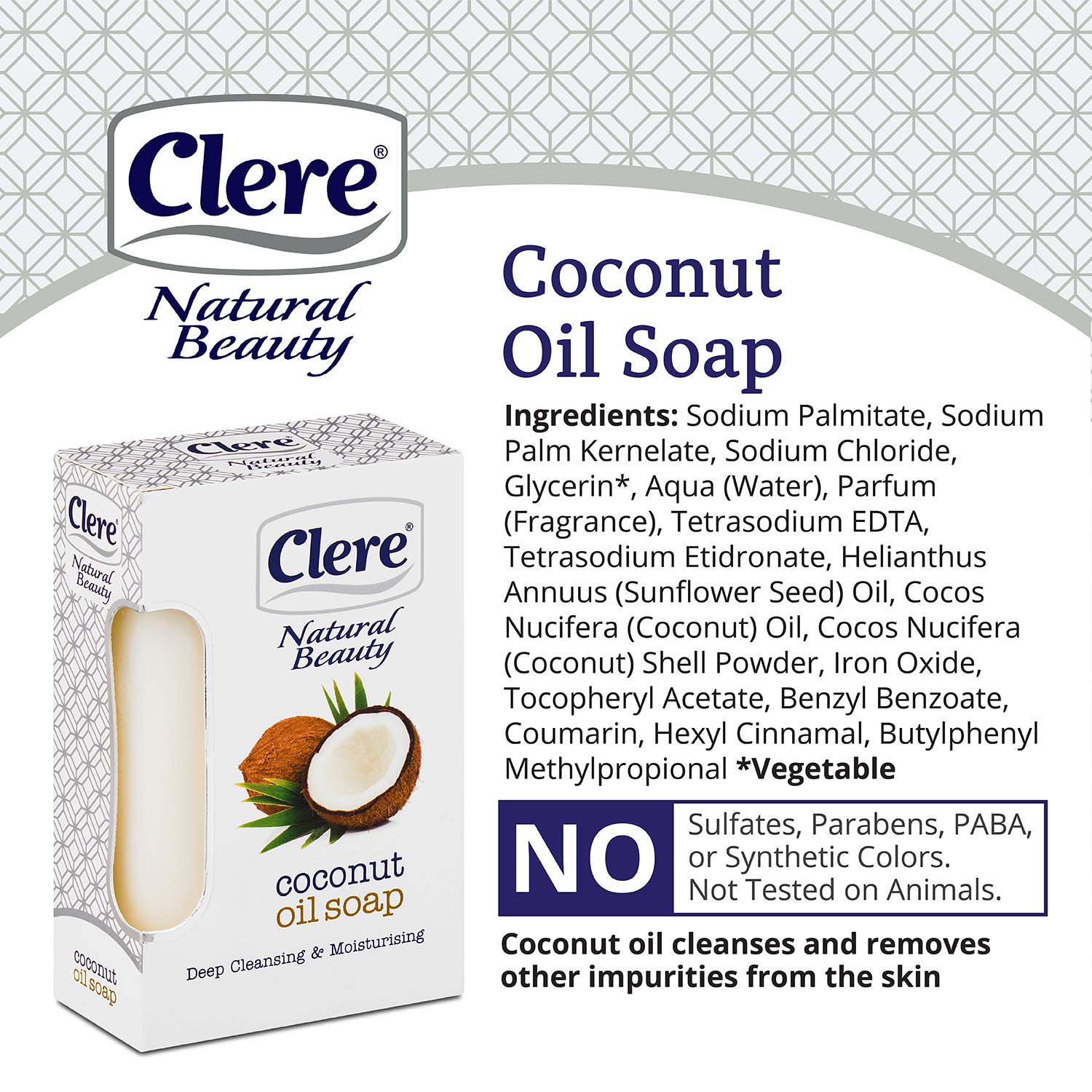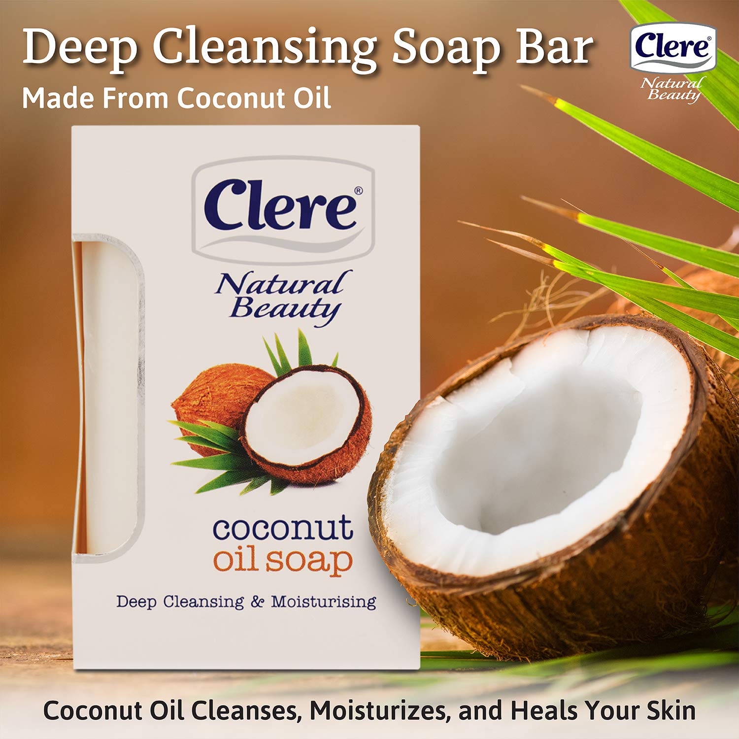 Le savon à l'huile de noix de coco Clere est fabriqué à partir d'ingrédients naturels, notamment Huile de coco hydratante et revitalisante. Chaque pain est offert. des produits chimiques nocifs qui peuvent irriter les peaux sensibles. Voyez comme votre peau est après chaque utilisation !