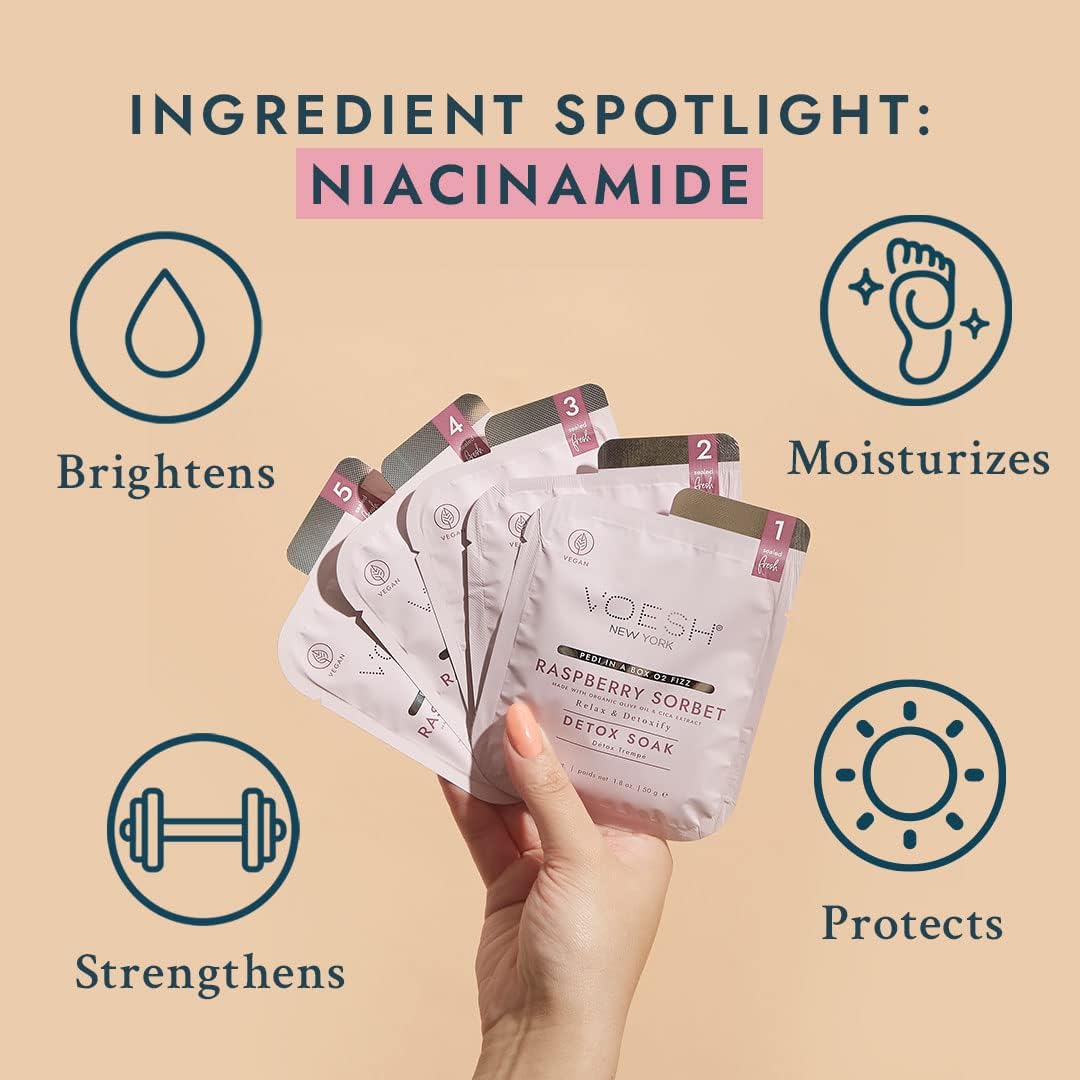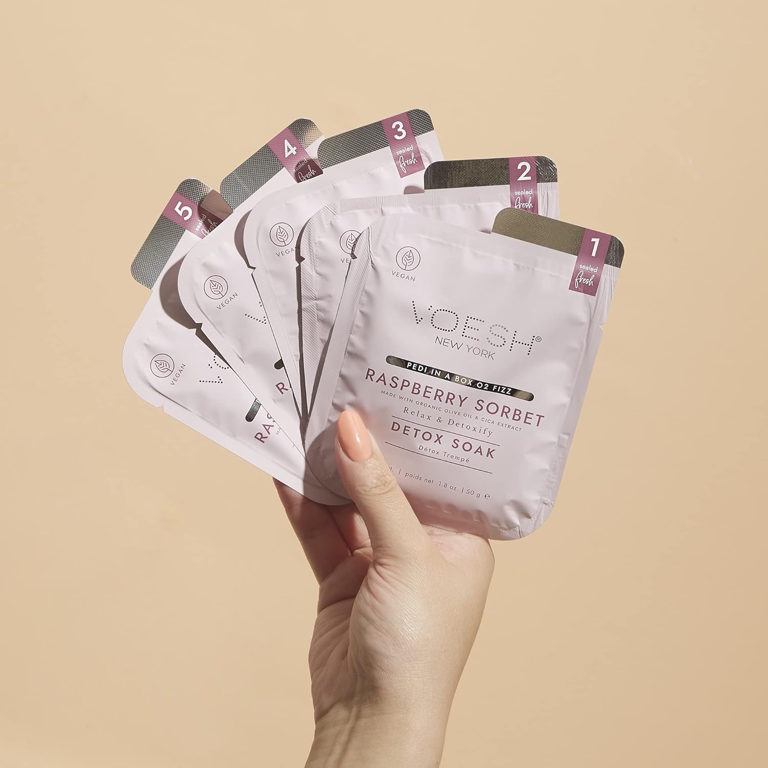 La poudre pétillante ajoute un élément de excitation, créant une expérience unique et agréable tout en détoxifiant vos pieds et favorise une meilleure circulation sanguine. Plongez-vous dans l'arôme tentant du sorbet à la framboise alors que vous vous lancez dans ce programme en cinq étapes Un voyage vers le bonheur des pieds. Avec un parfum frais et délicieux, ces pédicures Les kits sont un vrai régal pour vos pieds.