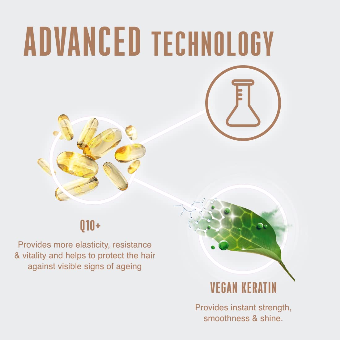 Introducing Advanced Technology featuring Vegan Care Complex with Vegan Keratin Alternative + Q10+. Bonacure Time Restore professional hair products benefit from our brilliant anti-ageing complex that immediately erases visible signs of ageing whilst stimulating the hair's natural Keratin synthesis.